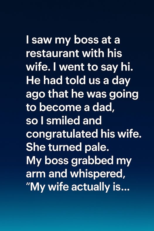 That’s when I saw him—my boss, Mr. Daniels. He was seated at a corner table, his wife across from him, candles flickering between them. They looked like a couple out of a magazine—perfect posture, polite smiles, the picture of elegance.